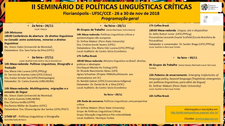 II SEMINÁRIO DE POLÍTICAS LINGUÍSTICAS CRÍTICAS