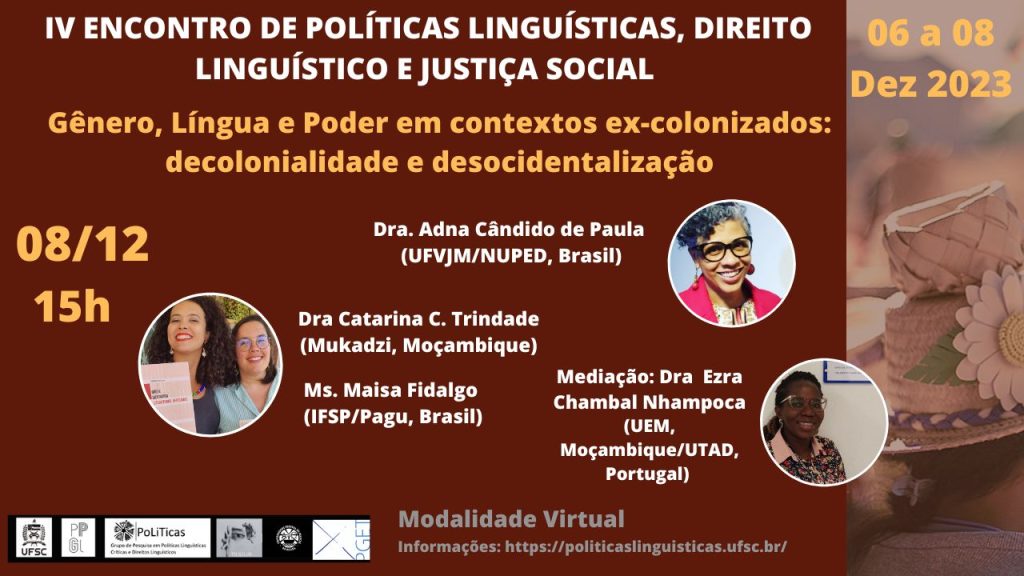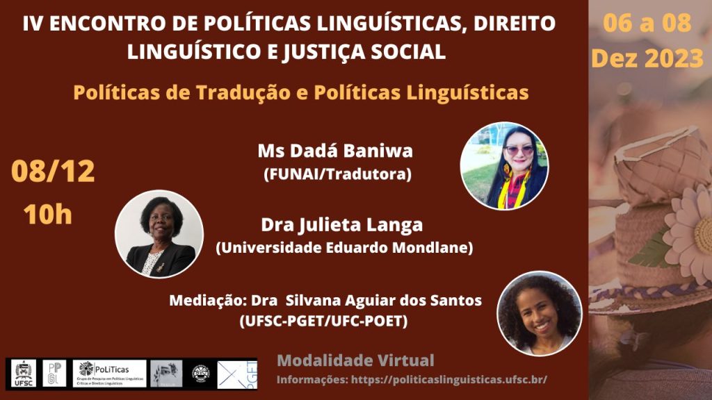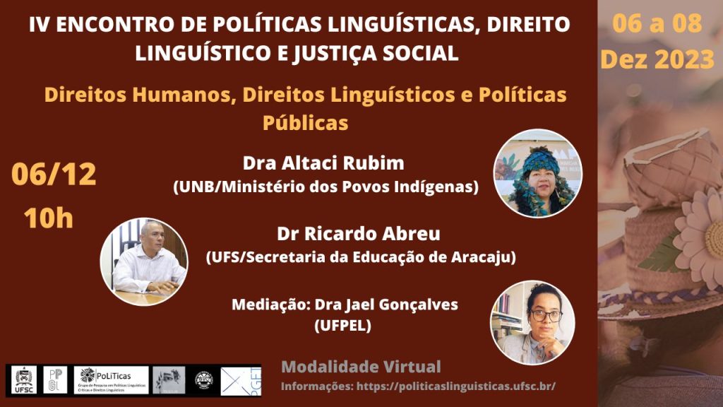 - 06 dezembro – GT 1: Direitos Humanos, Direitos Linguísticos e Políticas Linguísticas