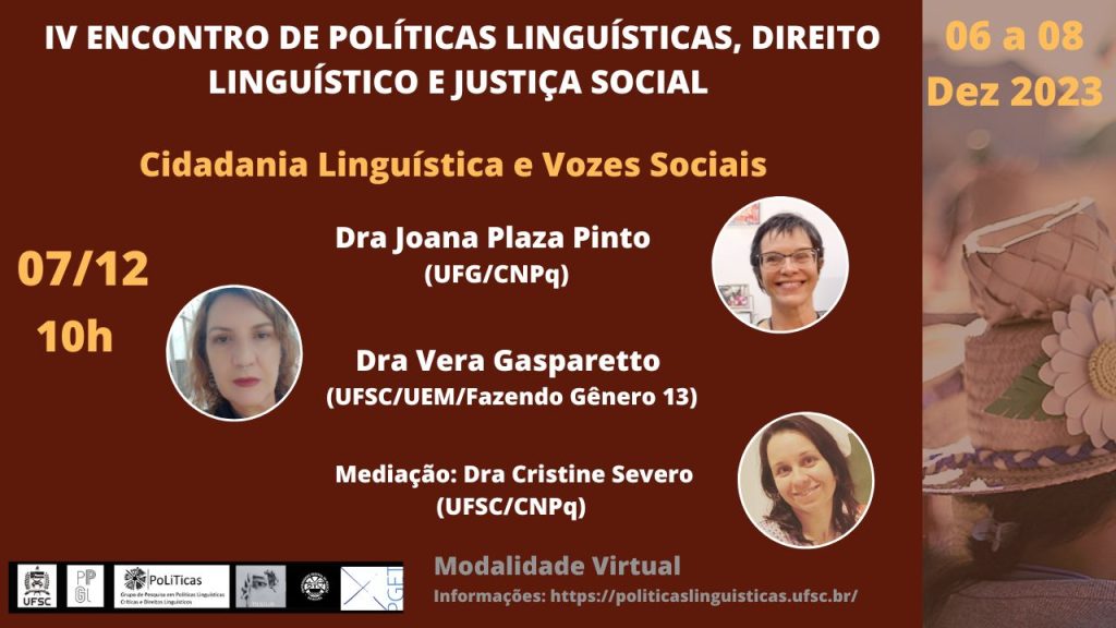 - 07 dezembro – GT2: Cidadania Linguística e Vozes Sociais